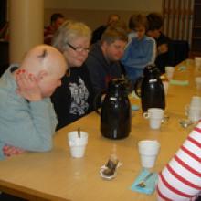 Efter uppvärming fikade vi och idag var det lite speciellt fika. Det var nämligen så att 4-årsprogrammet med läraren Monika kom på besök och bjöd oss på hembakad Morotskaka. Det var som ett tack för vår föreställning Trettondagsafton som de var och tittade på i augusti.