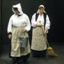 Sedan tränade vi mot ett litet uppspel till invigning. Tio av deltagarna i gruppen ska vara med på lördagen. Två scener hade valts ut - Vattenpumpenscenen ur Macken och Uti vår hage sången ur Lasse Maja. De fem som inte skulle delta på invigningen fick i uppdrag att hitta kostym och rekvisita till aktörerna.