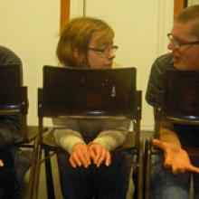 Det blev en snabbstart på morgonen med att repetera vår scen om Malakias. Annelie Hedvall från Kultur och Fritid skulle nämligen komma och besöka oss för att se scenen och för att planera inför vårens stadsvandring. Det blev en lyckad träff och många nya idéer kom upp, bland annat lite skoj med publiken, men det är förstås hemligt.