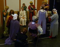 Resterande del av förmiddagen ägnades åt ett rollspel som utspelade sig i en form av sago-medeltid. Alla Änglar blev indelade i två folkslag - Västermo och Östermofolket. Alla fick varsin roll och släktskap i de båda grupperna bestämdes. Därefter klädde vi ut oss i för spelet passande kläder.
