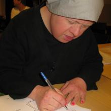 Den här torsdagen var lite pirrig för Maria och Carina, de har tillsammans med fyra andra kommit till final i Årets Västmanlänning för sitt arbete med Änglarna. På eftermiddagen skulle VLT komma och göra ett reportage Nog märktes det på dem att de var nervösa, det smittade av sig på hela gruppen. Under hela dagen var det mycket skämt och skratt.