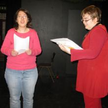 Sara och Josefin sätter sig in i Shakespeares melodiska text.