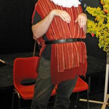 Idag hade vi också besök av Tomas Winther som skulle prova hur det kunde låta med flöjt i pjäsen. Vi provade både till sångerna och som förstärkning i vissa scener. Det blev mycket effektfullt och väckte nya ideér. Vi gjorde en jättefin scen när Antonio och Fabian hittar Sebastian där vi använder röster för att göra det mer spännande. Det känns verkligen som ett lyft att Snö vikarierar hos oss och kan hjälpa oss med att använda rösterna som förstärkning av scener.