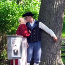 Nils (Göran) och Linnéa (Malin) leker tafatt.