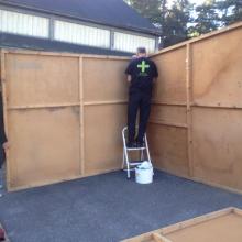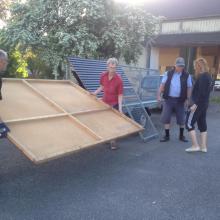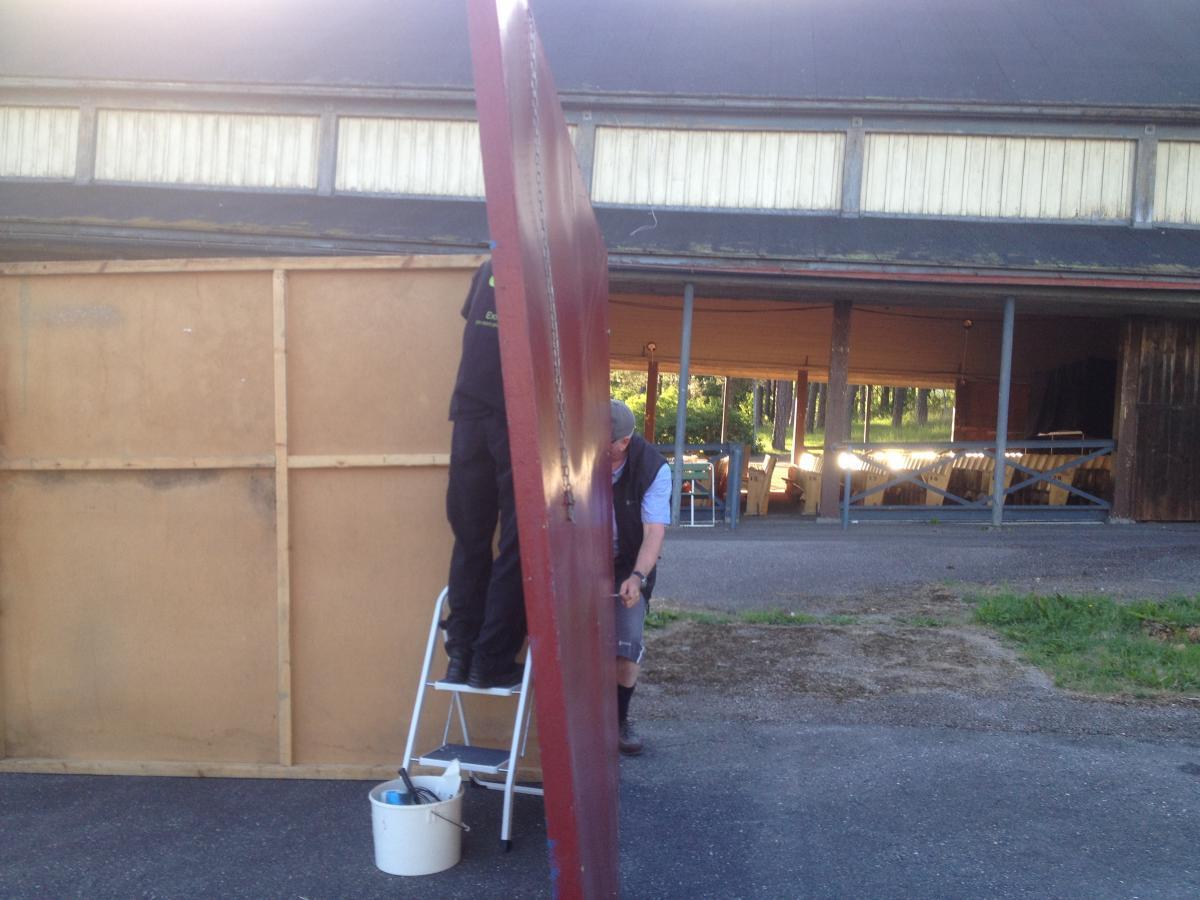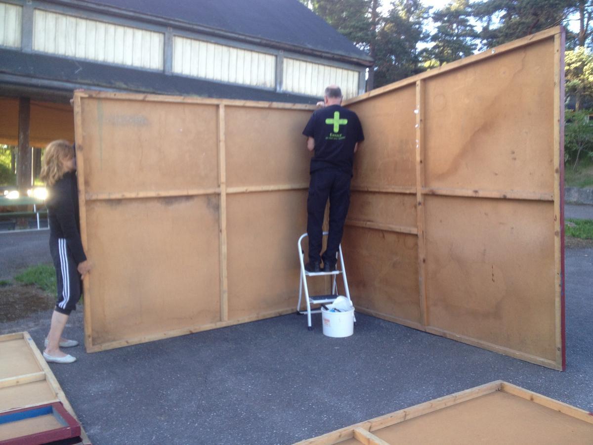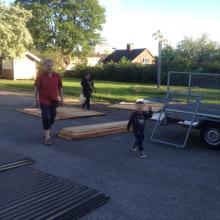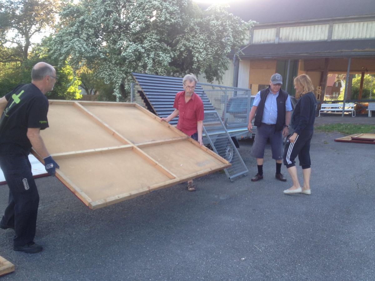 Om man vill ha den fullständiga känslan av Folkparkskväll klarar man sig inte utan choklad-tombola, café och korvförsäljning. Efter sökande på nätet blev vi tipsade om Lions i Kungsör och fick av dem låna två bodar att ha försäljningen i. Så det blev en tur till Arboga med kärra för att hämta bodarna.