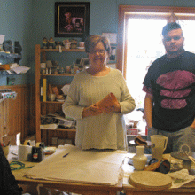 I Lena Axelssons ateljé, för att beställa 1700-talsmuggar. Kim, Sara k, Sofie och Maria var dit.