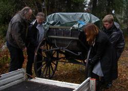 Under sommaren 2009 gjorde Maria och Carina ett riktigt klipp och köpte en gammal hästdroska att använda i Lasse Maja. Kärran hade stått ute i Kicki Magnusson och Hasses sommarstuga vid Västlandasjön. Nu var det hög tid att hämta hem den. Natten till lördagen den 14 november snöade det och vi tänkte: