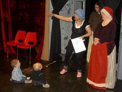 Åter torsdag och repetition för Änglarna. Morgonen startades som vanligt med genomgång av dagens arbete. Vi hade uppvärmning med dans till 70-tals musik "Åhh åhh åhh tjejer" lyfte nästan taket på Hagateatern (hade det inte varit så mycket snö på taket hade det säkert inte varit kvar idag) Sedan gick vi igenom slagsmålsscenen och alla slagskämpar fick prova. Lagom till fikat kom Tomas Winter som ska spela flöjt i föreställningen. Efter kaffet bytte alla om och vi hjälptes åt att bygga scenen. Så var det dags för ett genomdrag av första halvan av pjäsen. Tomas tittade på och provade lite på flöjten. -