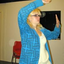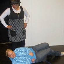 Vi började morgonen med yogauppvärming därefter gjorde vi en ny uppvärmingsövning - Karlsson till Persson. Den handlar om väldight mycket kontakt - fysisk sådan. Alla var indelade två och två och fick i uppdrag av en utropare att sätta ihop olika kroppsdelar mot varandra tex. öra mot öra, fot mot axel, rygg mot rumpa osv. När utroparen ropade Karlsson till Persson skulla man byta par, utroparen fick då ta någon att vara i par med så att någon annan blev utropare.
