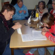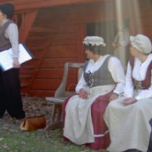 Uppvärming, fika och sedan arbete med Malakiasscen. Innan vi gav oss på att repetera på scenen gjorde vi lite traditionella lekar som barn och även vuxna lekte på den tiden Malakias levde dvs 1800-talet. -