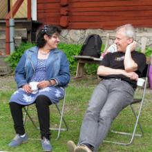 Denna torsdag tillbringade vi hela dagen på Gammelgården med undantag för lunchen som avnjutades på Hagateatern. Förmiddagen ägnades åt genomdrag på hela pjäsen. Lasse, Kalle, Hanna och Linnéa var med oss denna torsdag och för Lasse var det första torsdagen utomhus på Gammelgården. -
