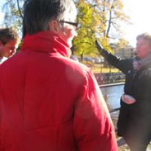 Denna torsdag ägnades åt guidad stadsvandring i härligt höstväder och arbete med tre olika forumspelsscener. Det känns spännande att få möjligheten och tiden att prova på olika inriktningar och genrer med Änglarna. Vi är just nu i en sökande fas där vi provar på olika områden inom teaterns fantastiska värld - genrer som vi aldrig tidigare har provat. Denna dag hade vi besök av Carl som är med i Hagateatern och nu är ute på praktik från Ullvigymnasiet - Vårdprogrammet. -