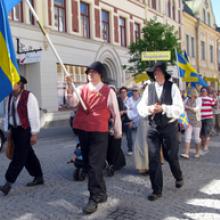 Några ur Änglarna deltog under Svenska Flaggans dag den 6 juni. Vi var först med och gick i tåget från Storatorget upp till Gammelgården. Väl på Gammelgården uppträdde vi med en scen och sång ur Lasse Maja. Sen gick vi runt och lämnade ut infolappar om föreställningen. -