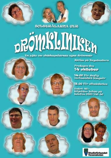 Gruppen Solstrålarna är en teatergrupp inom LSS - särskilda omsorgen i Kungsör i samarbete med Studieförbundet Vuxenskolan. Solstrålarnas sjätte uppsättning baserades på gruppens egna personliga drömmar. Vi improviserade och pratade om vilka drömmar vi har i livet som vi ännu inte har uppfyllt och som vi kanske heller aldrig kommer att uppfylla. Utifrån detta skapades föreställningen där alla skådespelarna var patienter på Drömkliniken och publiken fick se alla drömmar bli uppfyllda, om än i fantasin.