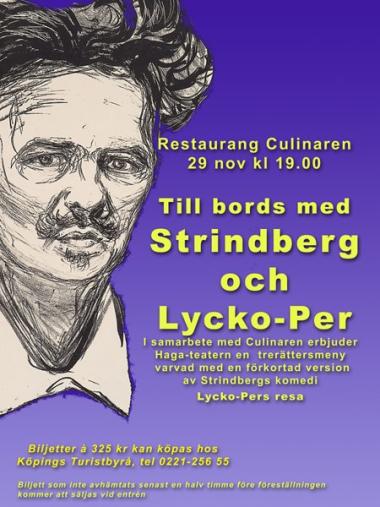 I ett samarbete med Ullvigymnasiets restaurang och livsmedelsprogrammet spelades en förkortad variant av Stindbergs komedi Lycko-Pers resa. Lycko-Per är ett sagospel om pojken Per som vandrar ut i världen för att söka lyckan. Publiken blev förutom teater serverad en trerättersmeny med mat lagad efter recept från Strindbergs egen kokbok.