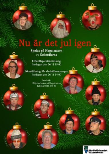Gruppen Solstrålarna är en teatergrupp inom LSS - särskilda omsorgen i Kungsör i samarbete med Studieförbundet Vuxenskolan. Surtanten Svea hatar julen. Hon vill för allt i världen inte ha hjälp av någon, framförallt inte av sin glada syster Astrid från Motala. Men när Svea halkar på trappan så finns det ingen återvändo utan hon måste ta hjälp för att klara sig. En julpjäs som doftade pepparkaka och innehöll både musik, läckra sjuksköterskor, taxichafförer, sura tanter, glada gubbar, julkorv, sill, tjuvar, renar med mera...